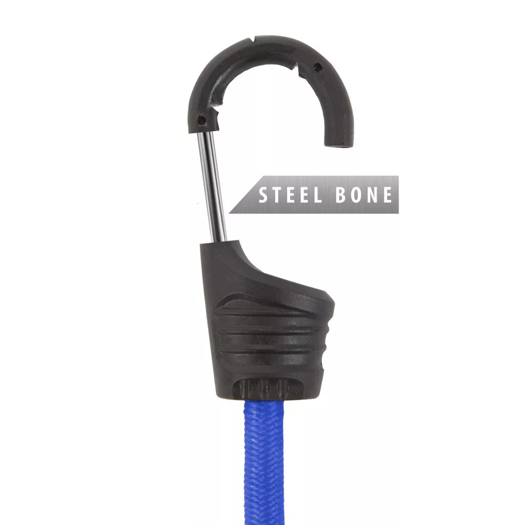 Figyelem! Emelésre ne használja! Ügyeljen kihúzásnál a gumi terhelhetőségére! Rögzítésnél legyen körültekintő az esetlegesen visszacsapódó gumi okozta sérülések elkerülése érdekében! Ne használja a gumipókot éles, a terméken sérülést okozó tárgyak rögzítésére! Használat előtt ellenőrizze a gumipók sértetlenségét! - Erős, műanyagborítással rendelkező fém kampók