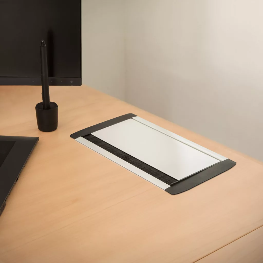 Süllyeszthető elosztó irodai és otthoni felhasználásra, fém házzal, 5 db gyermekvédelemmel ellátott aljzattal. Asztala, bútora legyen mindig elegáns és rendezett, mégis funkcionális. A rejtett elosztó kiváló megoldás lehet ha már például kész konyhával rendelkezik, de nincs elegendő konnektor a kívánt helyen. Ilyenkor falvésés és villamos hálózat bővítés nélkül, remek alternatíva lehet egy rejtett elosztó. Egy mozdulat és máris rendelkezésre áll 5 szabad konnektor. Ideális lehet olyan elektromos eszközökhöz, amit nem folyamatosan használunk, kenyérpirító, vízforraló... Ha használaton kívül vannak, az elosztó egy mozdulattal elrejthető, ezzel is megkönnyítve például a takarítást, valamint rendezett, letisztult külsőt ad a helységnek.