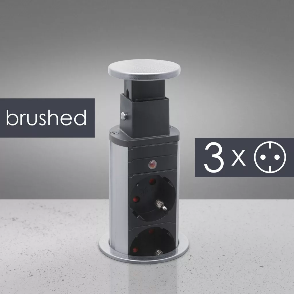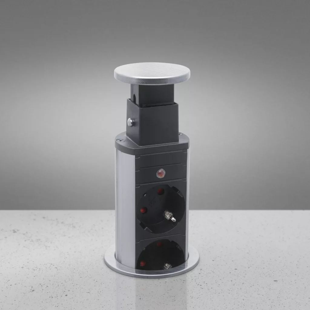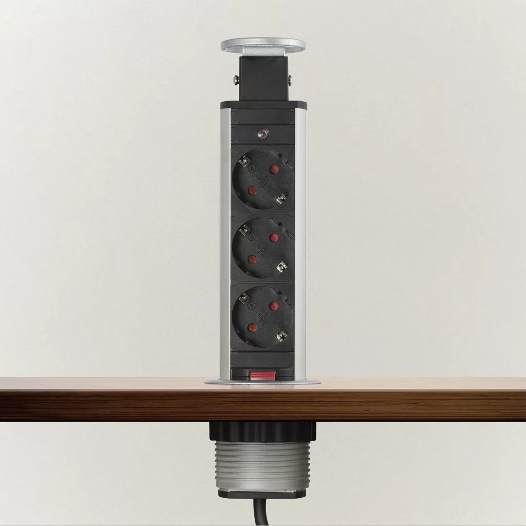 Süllyeszthető elosztó irodai és otthoni felhasználásra, fém házzal, 3 db gyermekvédelemmel ellátott aljzattal. Asztala, bútora legyen mindig elegáns és rendezett, mégis funkcionális. A rejtett elosztó kiváló megoldás lehet ha már például kész konyhával rendelkezik, de nincs elegendő konnektor a kívánt helyen. Ilyenkor falvésés és villamos hálózat bővítés nélkül, remek alternatíva lehet egy rejtett elosztó. Egy mozdulat és máris rendelkezésre áll 3 szabad konnektor. Ideális lehet olyan elektromos eszközökhöz, amit nem folyamatosan használunk, kenyérpirító, vízforraló... Ha használaton kívül vannak, a "töltőoszlop" egy mozdulattal elrejthető, ezzel is megkönnyítve például a takarítást, valamint rendezett, letisztult külsőt ad a helységnek.