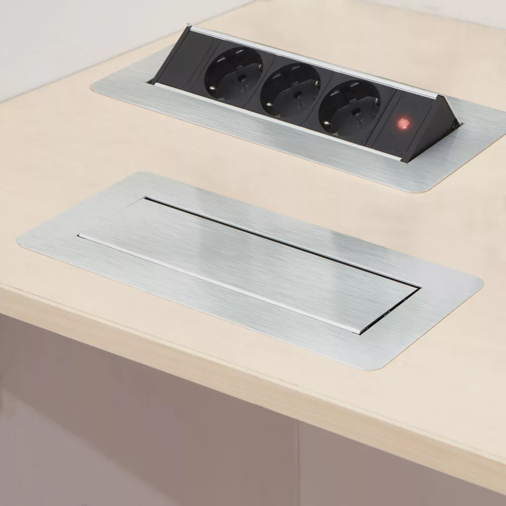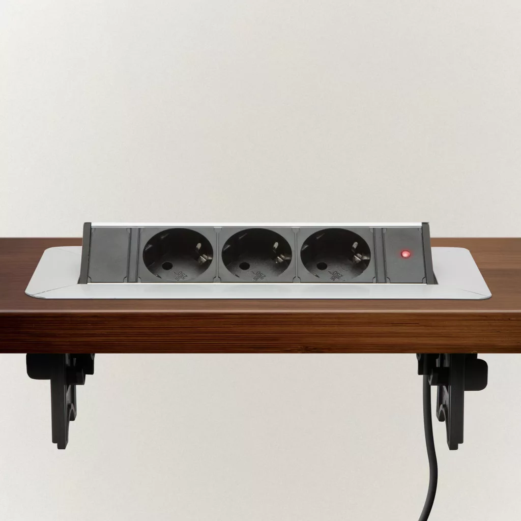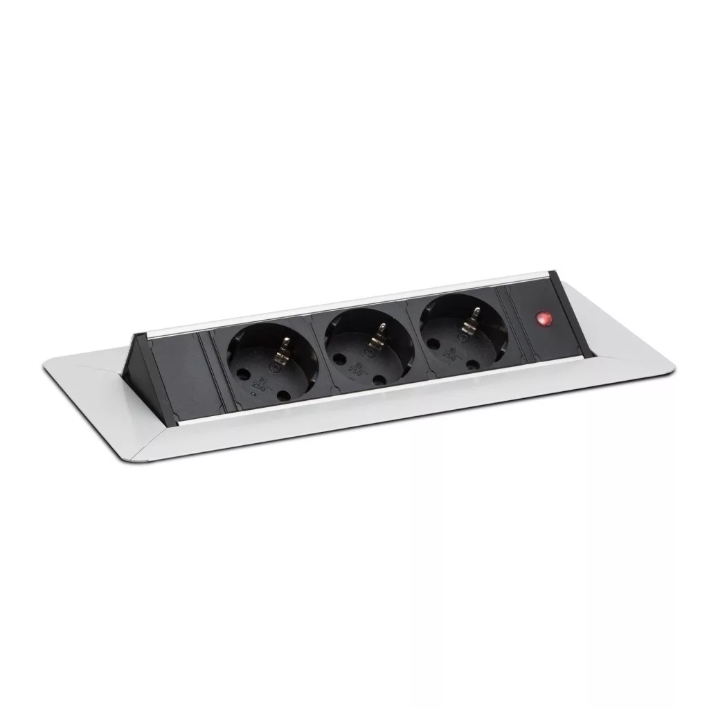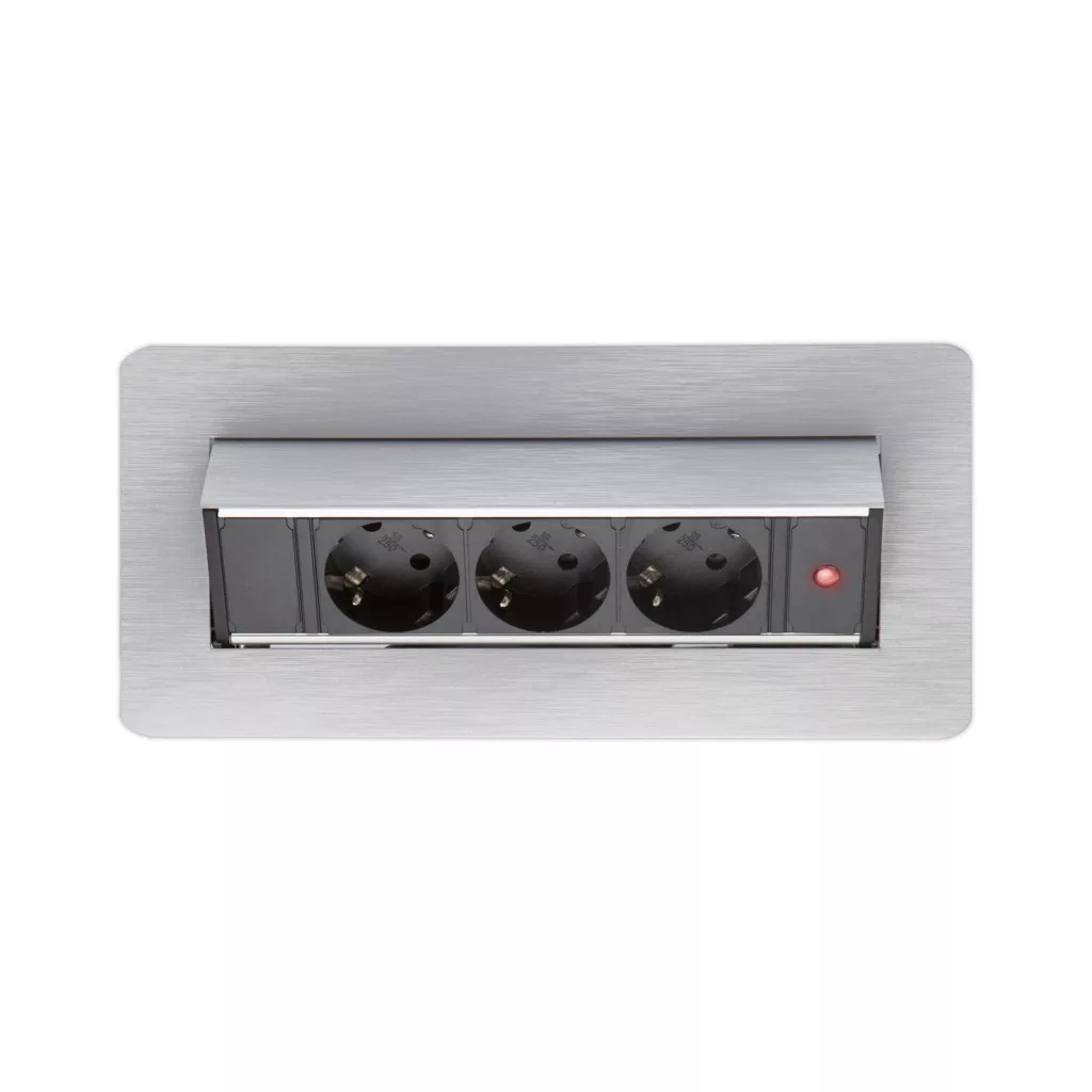 Süllyeszthető elosztó irodai és otthoni felhasználásra, szálcsiszolt felülettel, 3 db gyermekvédelemmel ellátott aljzattal. Asztala, bútora legyen mindig elegáns és rendezett, mégis funkcionális. A rejtett elosztó kiváló megoldás lehet ha már például kész konyhával rendelkezik, de nincs elegendő konnektor a kívánt helyen. Ilyenkor falvésés és villamos hálózat bővítés nélkül, remek alternatíva lehet egy rejtett elosztó. Egy mozdulat és máris rendelkezésre áll 3 szabad konnektor. Ideális lehet olyan elektromos eszközökhöz, amit nem folyamatosan használunk, kenyérpirító, vízforraló... Ha használaton kívül vannak, az "flip-up" elosztó egy mozdulattal elrejthető, ezzel is megkönnyítve például a takarítást, valamint rendezett, letisztult külsőt ad a helységnek.