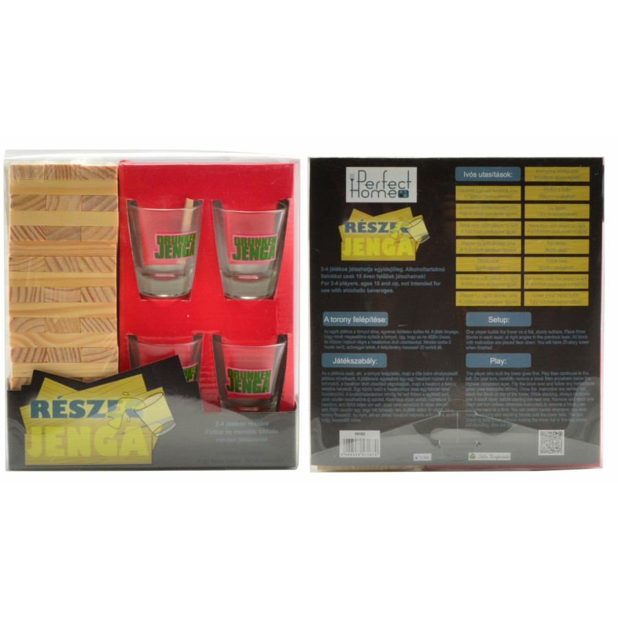 Tartalma: 60 db fakocka (7x2 cm), 4 db 3 cl üvegpohár.Ajánljuk: partykra, születésnapra, ajándéknak, összejövetelekre.Alkoholtartalmú italokkal csak 18 éven felüliek játszhatnak!