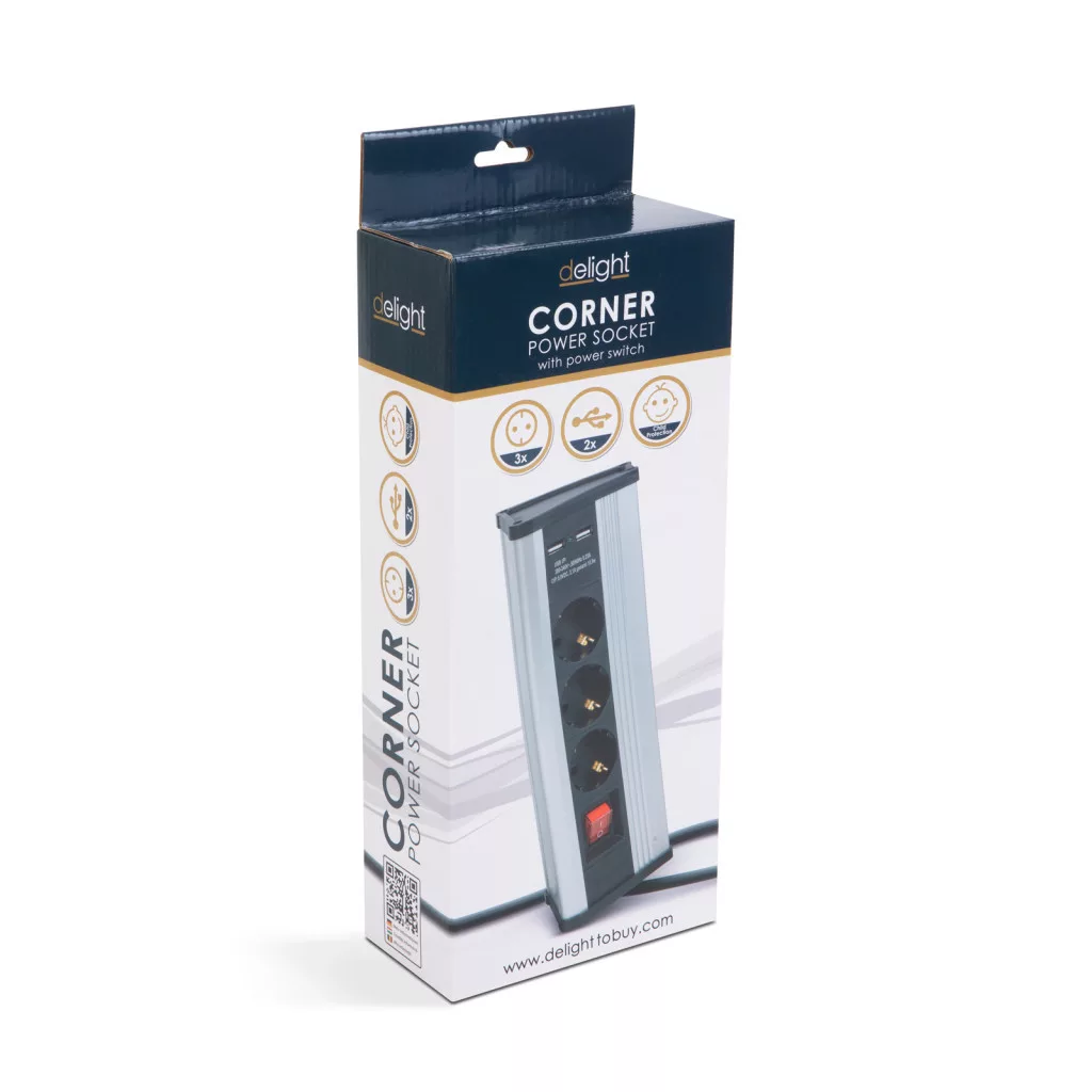 Ennek a sarokban helyezhető elosztónak köszönhetően helyet takaríthat meg bármely felületen. Ideális lehet konyhákba, szobákba, irodákba és minden olyan helyen, ahol nem lehetséges villamoshálózat, konnektor kiépítése. A beépített USB portoknak köszönhetően könnyen és gyorsan feltöltheti mobil eszközeit is. Használatával elkerülhető a falak vésése vagy a munkapult, bútorlap nagymértékű vágása. A sarokba helyezhető elosztó helyet takarít meg Önnek a falfelületen is, így például több hely marad a konyhapult felett kések, konyhai eszközök rögzítésére, felakasztására.