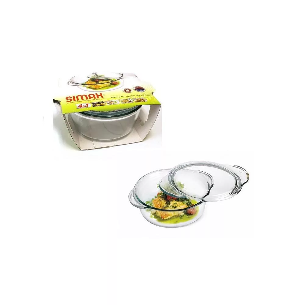 Simax hőálló sütőtál mély kerek tál 2,8+0,5 liter