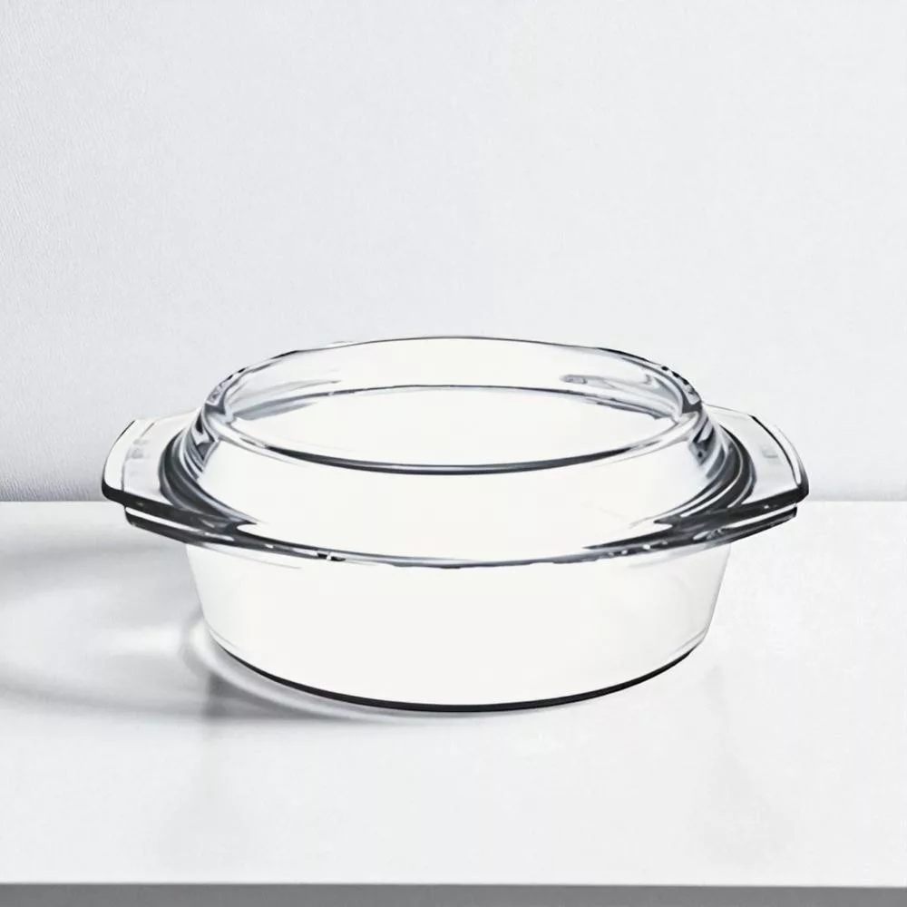 • 1 db kerek hőálló üvegtál fedővel (2 liter+0,9 liter)