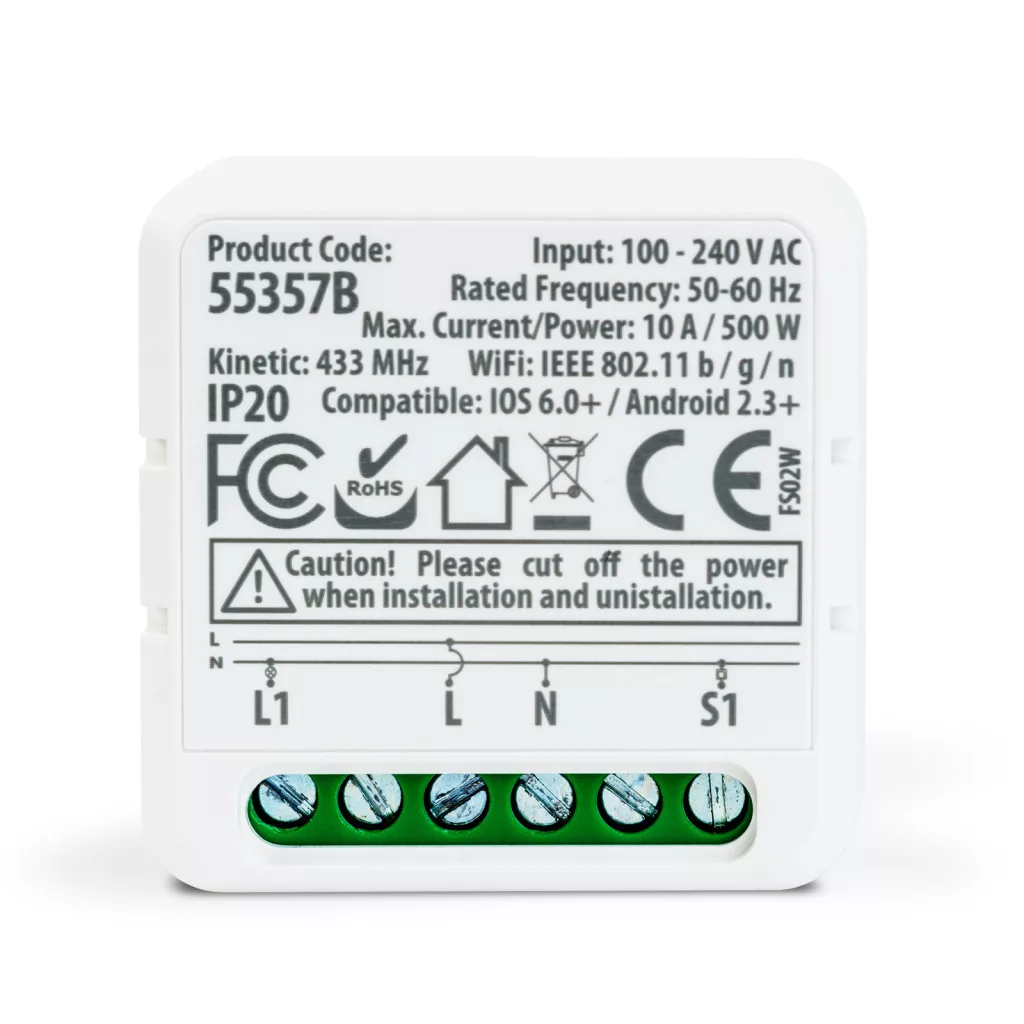 Figyelem! Szerelés előtt ellenőrizze, hogy feszültségmentesített az áramkör! Figyeljen a megfelelő bekötésre, ha elbizonytalanodik minden esetben kérje szakember segítségét! A készülék irányítható egyszerre több mobilkészülékről, tabletről vagy akár az eszközön található gombnak a segítségével, de vásárolhat hozzá egy vagy több fali kapcsolót is, így a lakás több pontjáról is kapcsolható lesz az eszköz. Segítségével a villamos hálózat módosítása nélkül, egyszerűen kapcsolhatunk és hangolhatunk össze több eszközt! A termék WiFi és 433 Mhz-es technológiával működik, így nem szükséges hozzá úgynevezett Gateway hálózati eszközt telepíteni, elégséges, ha van otthon internet kapcsolatunk és rendelkezünk vezeték nélküli hozzáféréssel. (Van router és elérhető WiFi)