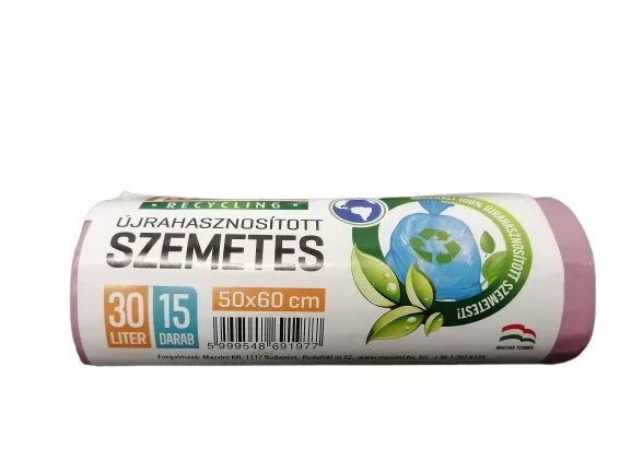 Szemeteszsák (15 db, 30 l), újrahasznosított