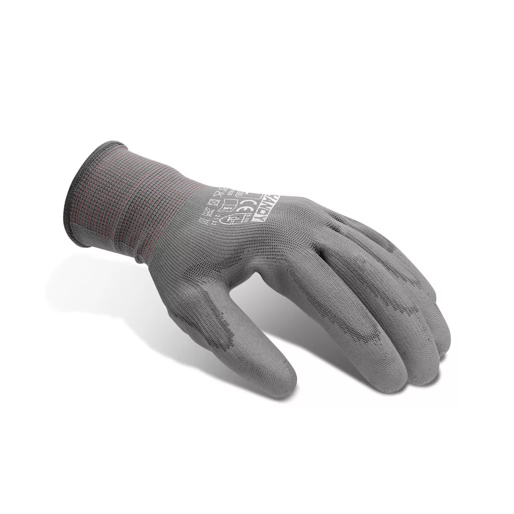 Rendkívül rugalmas, szoros illeszkedésű kesztyű poliuretán bélelt tenyérrel, nylon béléssel és rugalmas mandzsettával. Ideális általános felhasználásra. Vékony bevonata pontos tapintást tesz lehetővé, ezért olyan helyeken ahol kisméretű alkatrészekkel dolgoznak nagyon népszerű.