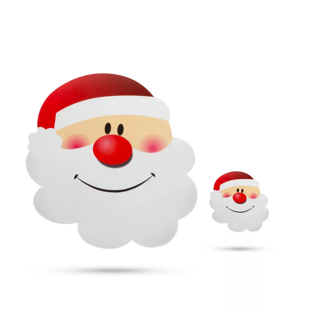 Karácsonyi asztali tányér- és poháralátét mikulás mintával. A szett 4 tányér és 4 mosolygós mikulásos poháralátétet tartalmaz.