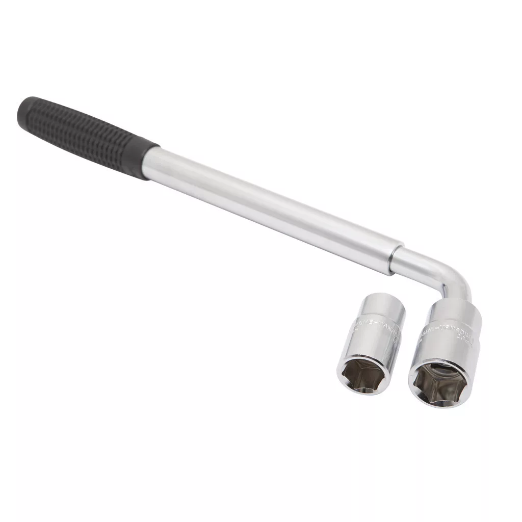 Teleszkópos kerékkulcs. Ennek a terméknek a használatával gyerekjáték a kerékcsere! A teleszkópos nyél lehetőséget biztosít az erőkar növelésére, így könnyebben lazíthatja le kerékanyáit. A 4 féle krova méret a legtöbb kerékanyával kompatibilis.