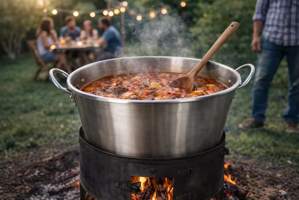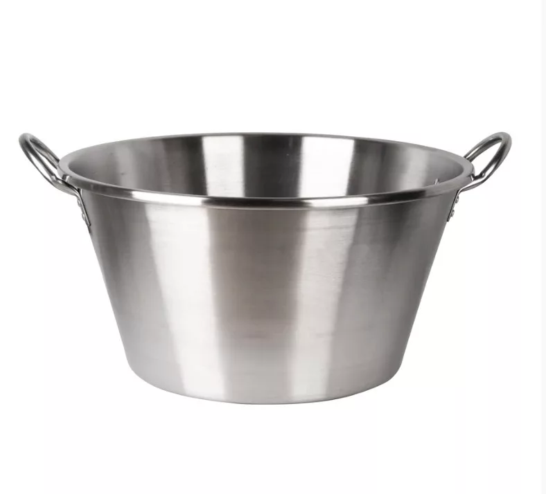 A Perfect Home rozsdamentes (inox) üst ~40 liter kiváló választás szabadtéri főzéshez. 1,2 mm vastag rozsdamentes acélból készült, tartós és higiénikus. Felső átmérője 52 cm (füllel 63 cm), alsó átmérője 33 cm, magassága 30,5 cm. Űrtartalma kb. 40 liter. 50-es üstházhoz (71086) használható, semleges mosogatószerrel könnyen tisztítható.