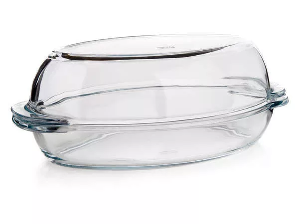 Üveg sütőtál BORCAM 4,6 l, fedővel, ovális