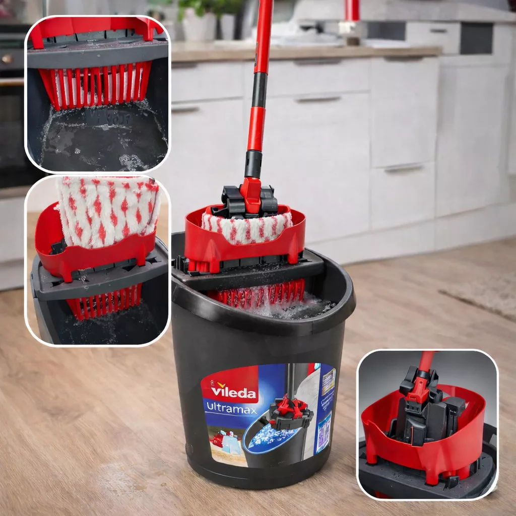 A Vileda Ultramax vödör csavarókosárral tökéletes választás a gyors és alapos padlótisztításhoz. Az innovatív csavarórendszer lehetővé teszi, hogy a felmosófejet kéz érintése nélkül csavard ki, így a takarítás higiénikusabb és kényelmesebb. Főbb jellemzők: Ergonomikus csavarókosár: hatékony vízkicsavarás minimális erőfeszítéssel Fröccsenésgátló kialakítás: tiszta és rendezett használat Masszív, stabil vödör: hosszú élettartam és biztonságos használat Praktikus kiöntőnyílás: könnyű vízleeresztés Kompatibilis Ultramax felmosóval: tökéletes rendszerben működik Miért válaszd a Vileda Ultramax vödröt? A Vileda Ultramax vödör csavarókosárral megkönnyíti a mindennapi felmosást, miközben csökkenti a fizikai terhelést. A speciális csavarómechanizmusnak köszönhetően nem kell kézzel érintened a nedves felmosófejet, így higiénikusabb megoldást kínál. Ideális felhasználás: Laminált padló Parketta Járólap és csempe Konyha és fürdőszoba