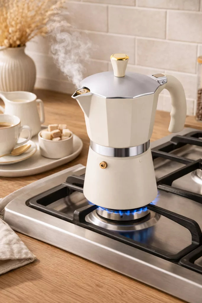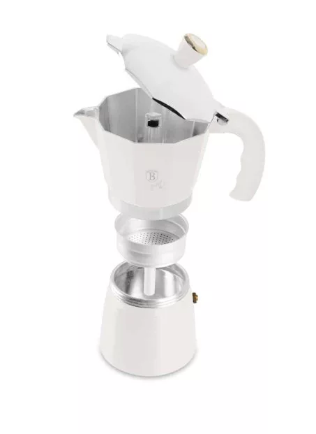A Berlinger Haus BH/8573 kotyogós kávéfőző ideális választás azok számára, akik gyorsan és egyszerűen szeretnének finom, aromás eszpresszót készíteni otthon. A 9 személyes, 450 ml űrtartalmú kávéfőző tökéletes mindennapi használatra, de családi reggelikhez vagy vendégváráshoz is kiváló. A strapabíró alumínium kialakítás egyenletes hőelosztást biztosít, így a kávé hatékonyan és megbízhatóan készül el. Az ergonomikus, kényelmes fogást biztosító Soft Touch fogantyú és gomb biztonságos használatot nyújt, míg az elegáns matt krém szín letisztult és stílusos megjelenést ad a konyhának. A kotyogós kávéfőző gáz-, elektromos és kerámialapos tűzhelyen használható. Indukciós főzőlapon adapter használata szükséges, ha a főző nem rendelkezik indukcióbarát alappal. A tisztítása egyszerű: használat után langyos vízzel ajánlott kiöblíteni és alaposan megszárítani. A hosszabb élettartam megőrzése érdekében kézi mosogatás javasolt, a mosogatógép használata nem ajánlott. Praktikus, könnyen kezelhető és esztétikus választás a mindennapi kávékészítéshez.