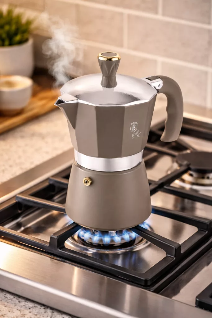 A Berlinger Haus BH-8569N kotyogós kávéfőző ideális választás azok számára, akik gyorsan és egyszerűen szeretnének ízletes, aromás eszpresszót készíteni otthon. A 6 személyes, 300 ml űrtartalmú kávéfőző tökéletes mindennapi használatra, de családi reggelikhez vagy vendégváráshoz is remek megoldás. A strapabíró alumínium kialakítás egyenletes hőelosztást biztosít, így a kávé hatékonyan és megbízhatóan készül el. Az ergonomikus, Soft Touch fogantyú és gomb kényelmes és biztonságos használatot nyújt, míg az elegáns taupe, vagyis szürkésbarna árnyalat modern és stílusos megjelenést ad a konyhának. A kotyogós kávéfőző gáz-, elektromos és kerámialapos tűzhelyen használható, így többféle háztartásban is praktikus választás. Indukciós főzőlapon csak akkor használható, ha külön indukciós adapterrel alkalmazzák. A kávéfőző tisztítása egyszerű: használat után langyos vízzel ajánlott elöblíteni és alaposan megszárítani. A hosszabb élettartam érdekében kézi mosogatás javasolt, erős vegyszerek és mosogatógép használata nem ajánlott.